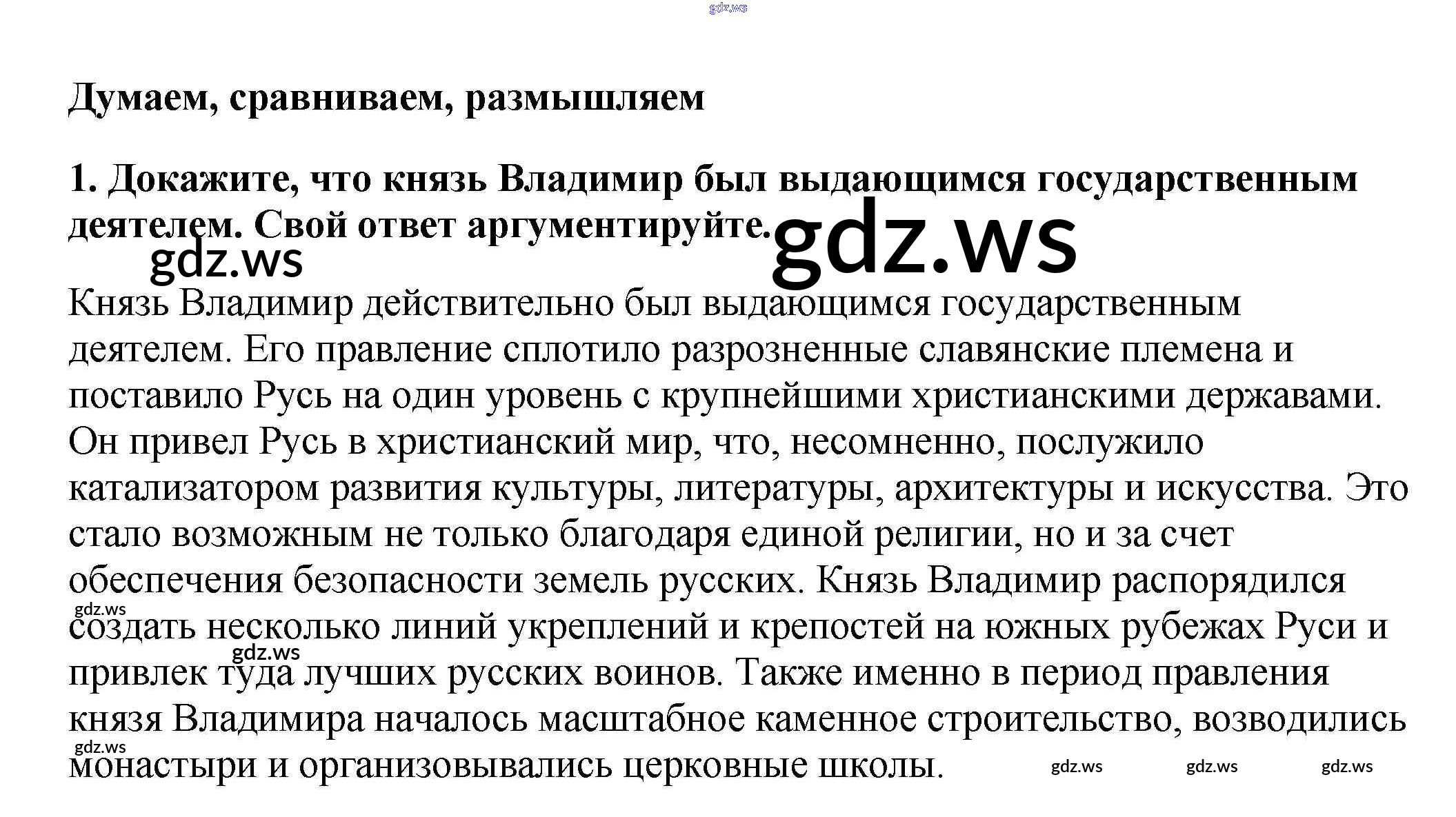 Готовый ответ Думаем, сравниваем, размышляем §6. Правление князя Владимира. Крещение Руси - Истории 6 класс Арсентьев Учебник ФГОС