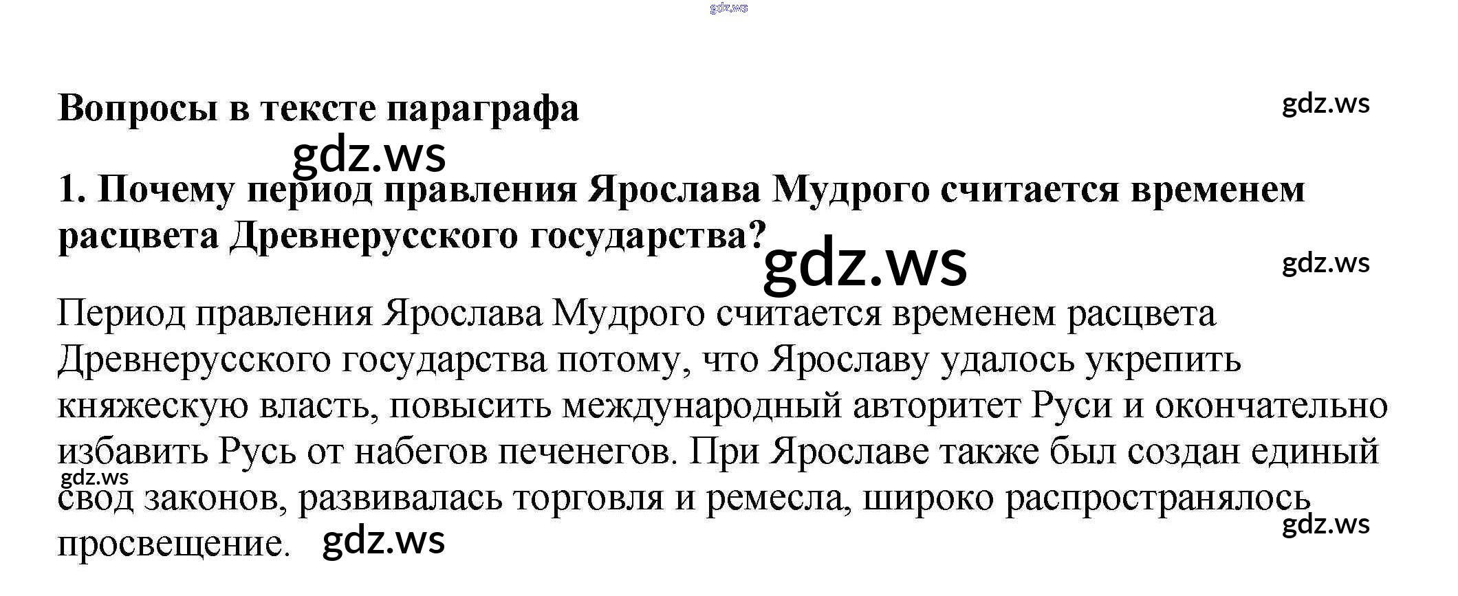 Готовый ответ Вопросы в тексте §7. Русское государство при Ярославе Мудром - Истории 6 класс Арсентьев Учебник ФГОС