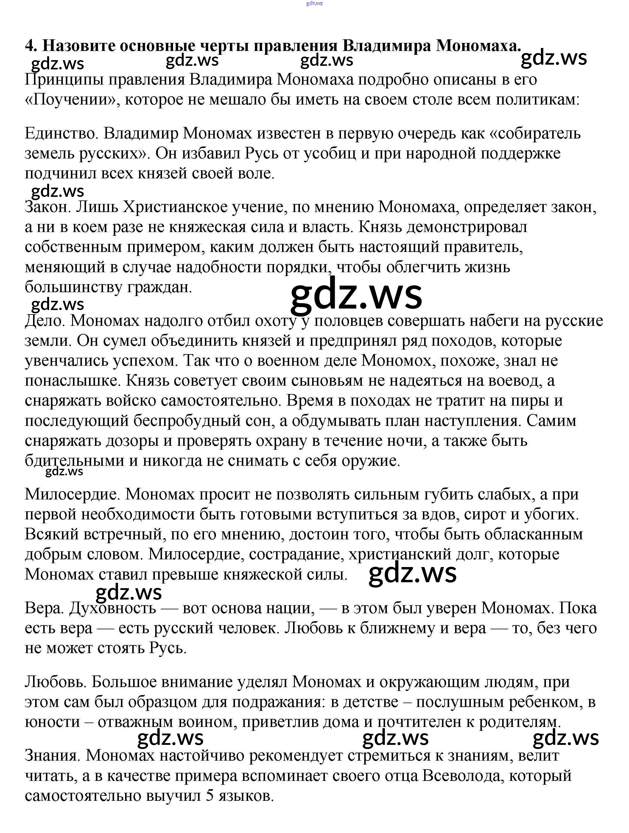 Готовый и полный ответ к Вопросы и задания для работы с текстом §8. Русь при наследниках Ярослава Мудрого. Владимир Мономах - Истории 6 класс Арсентьев Учебник ФГОС