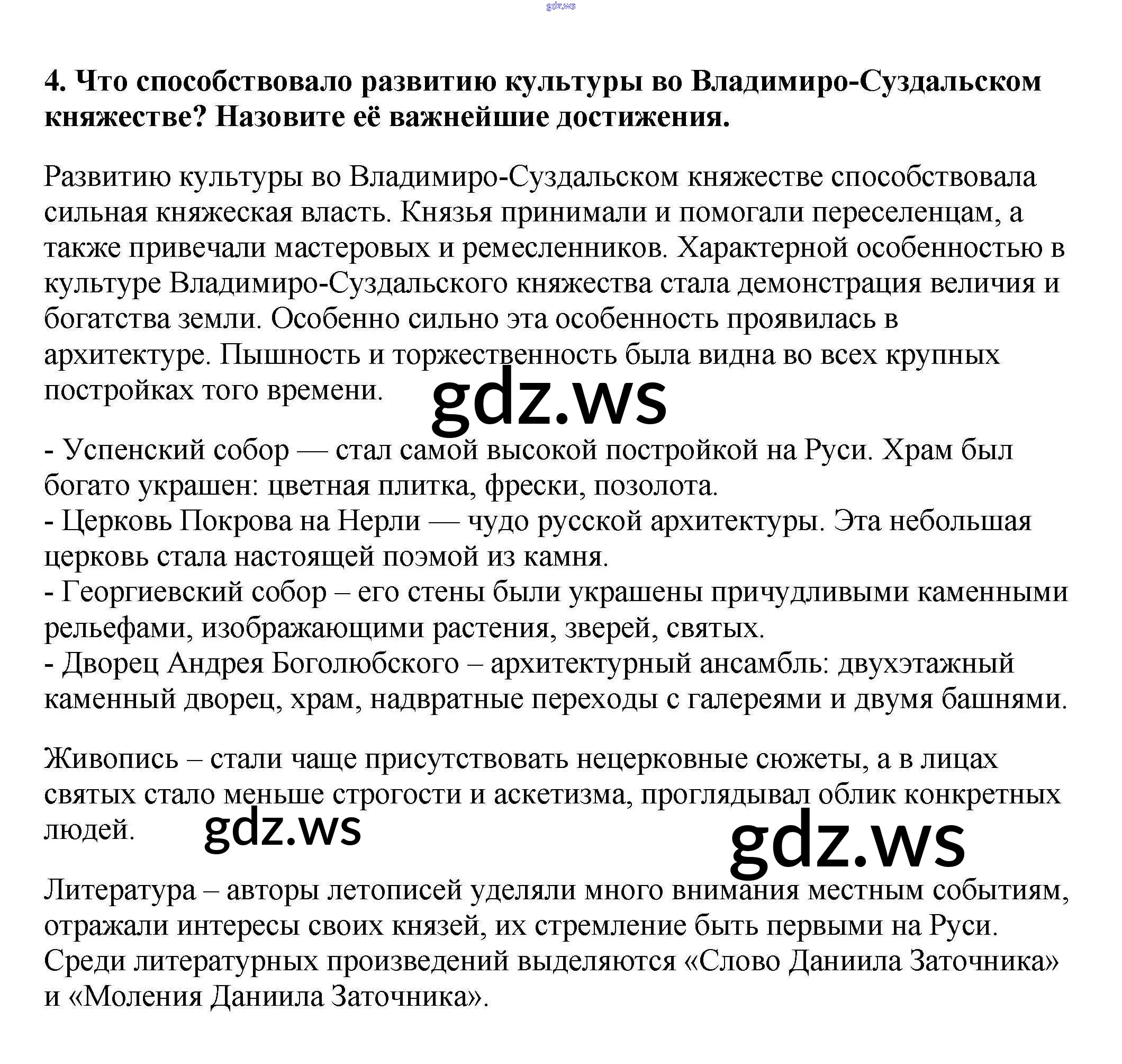 Готовый и полный ответ к Вопросы и задания для работы с текстом §13. Владимиро-Суздальское княжество - Истории 6 класс Арсентьев Учебник ФГОС