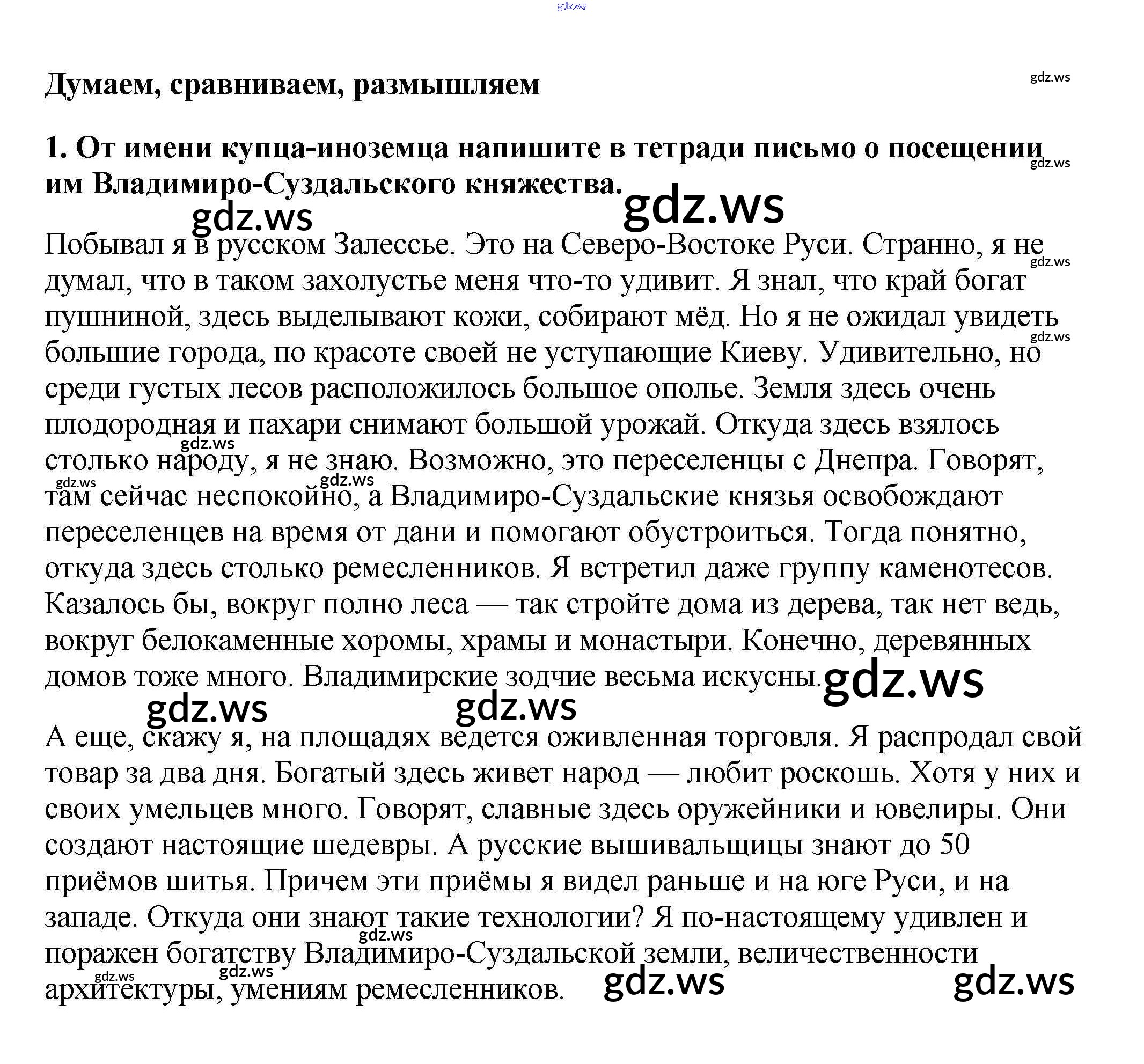 Готовый ответ Думаем, сравниваем, размышляем §13. Владимиро-Суздальское княжество - Истории 6 класс Арсентьев Учебник ФГОС