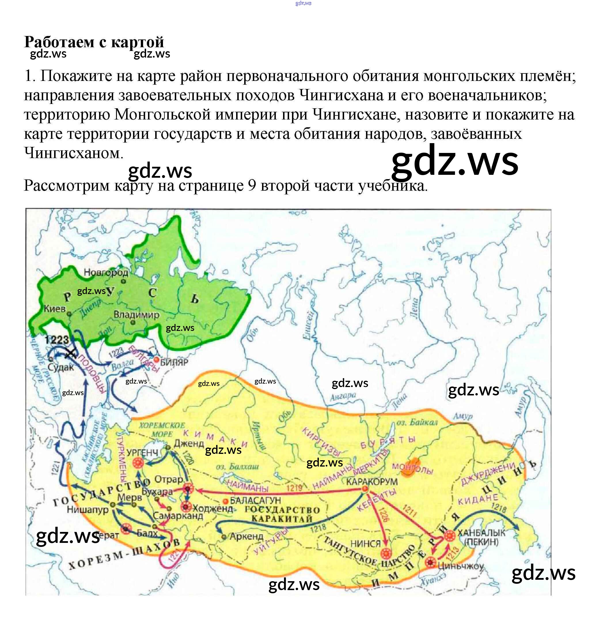 Готовый ответ Работаем с картой §15. Монгольская империя и изменение политической карты мира - Истории 6 класс Арсентьев Учебник ФГОС