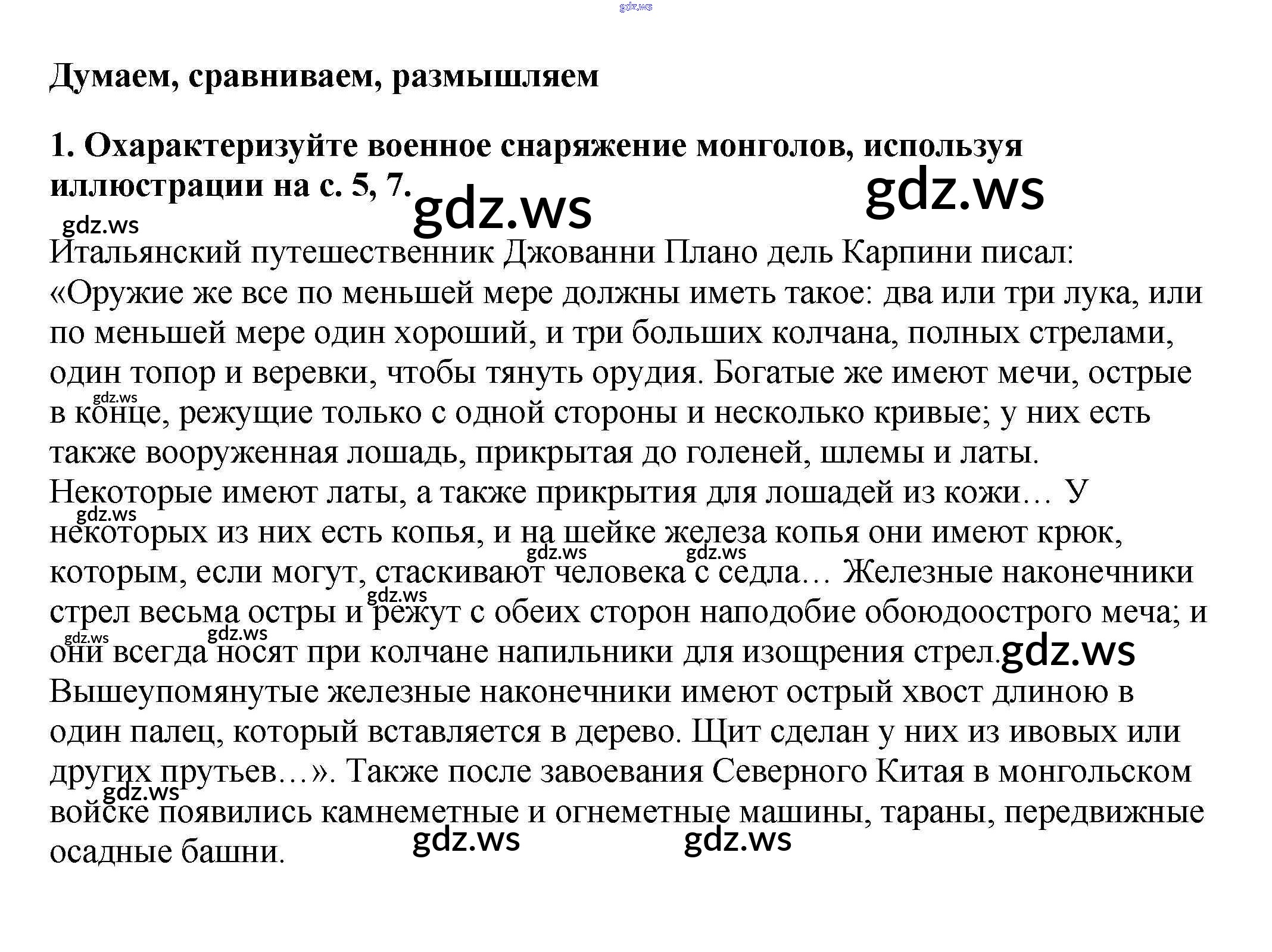Готовый и полный ответ к Думаем, сравниваем, размышляем §15. Монгольская империя и изменение политической карты мира - Истории 6 класс Арсентьев Учебник ФГОС