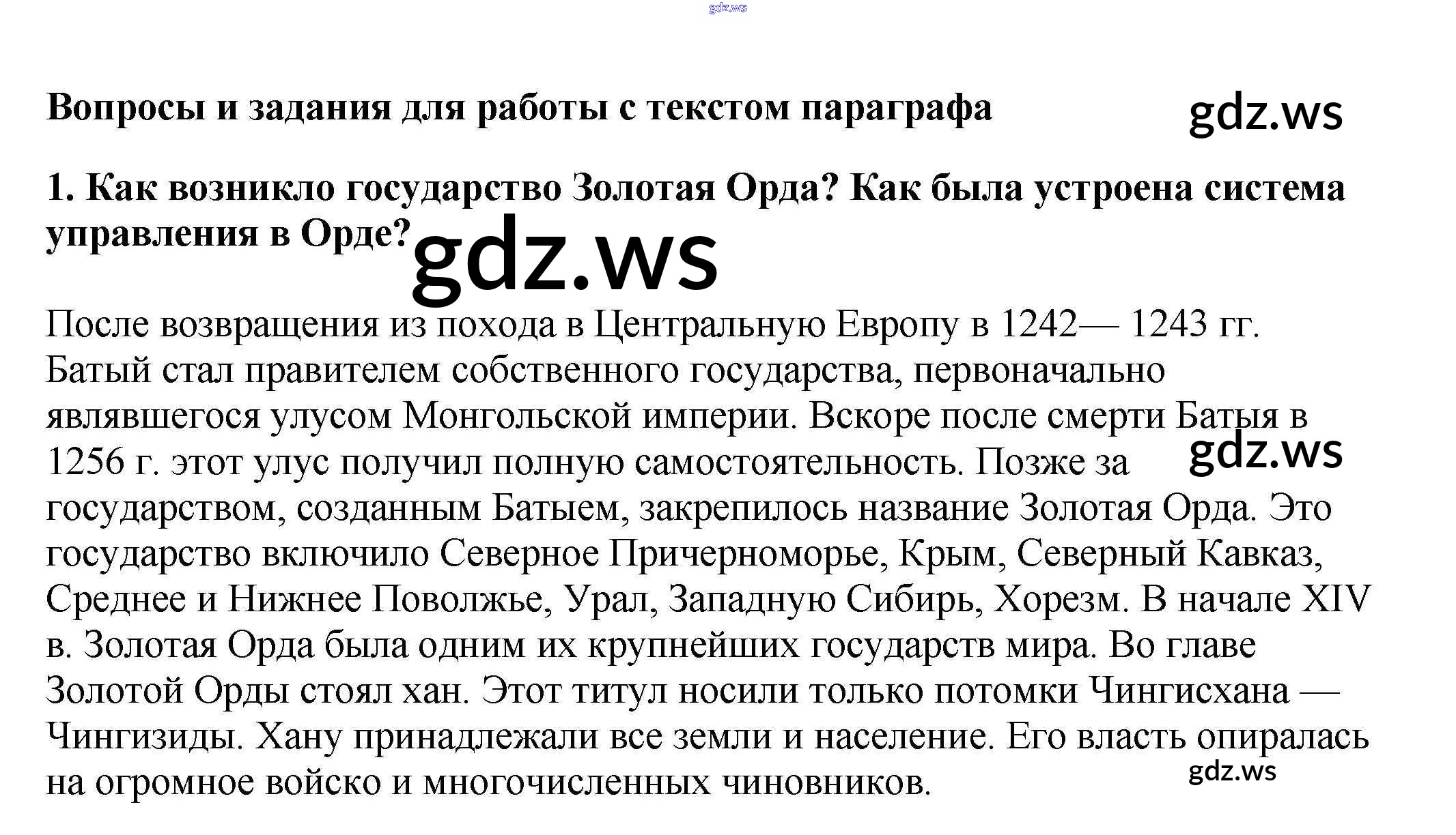 Готовый и полный ответ к Вопросы и задания для работы с текстом §18. Золотая Орда - Истории 6 класс Арсентьев Учебник ФГОС