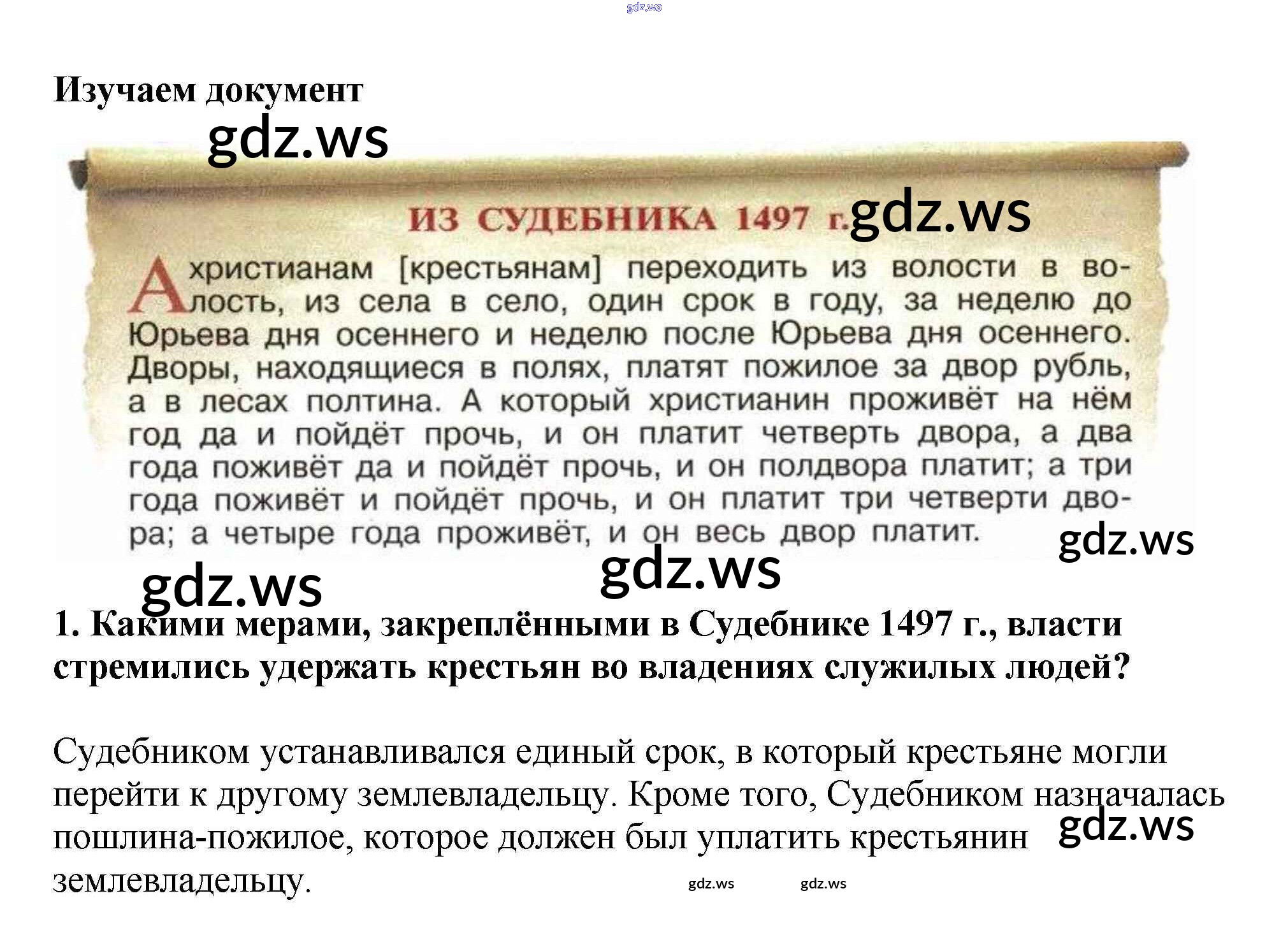 Готовый ответ Изучаем документ Человек в Российском государстве во второй половине XV в. - Истории 6 класс Арсентьев Учебник ФГОС