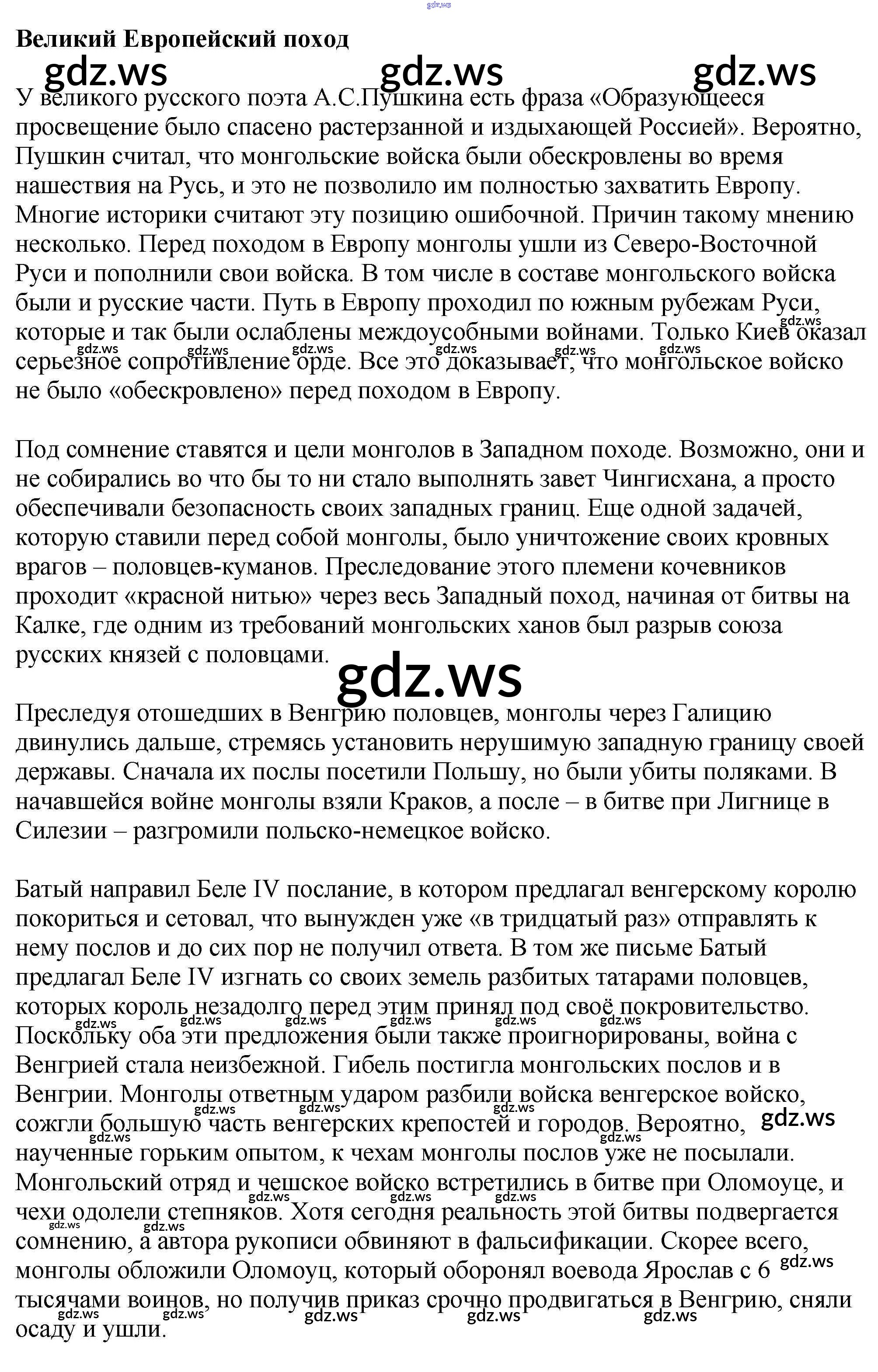 Готовый и полный ответ к Проекты - Истории 6 класс Арсентьев Учебник ФГОС