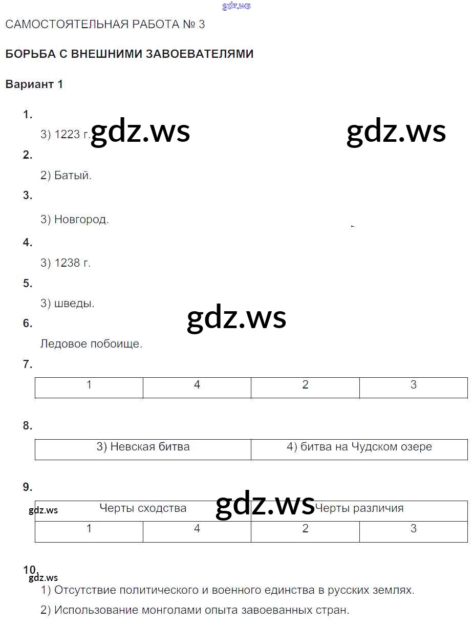 Готовый ответ СР-№3. Борьба с внешними завоевателями Формирование самостоятельных государственных образований на Руси - Истории 6 класс Артасов Тематический контроль ФГОС