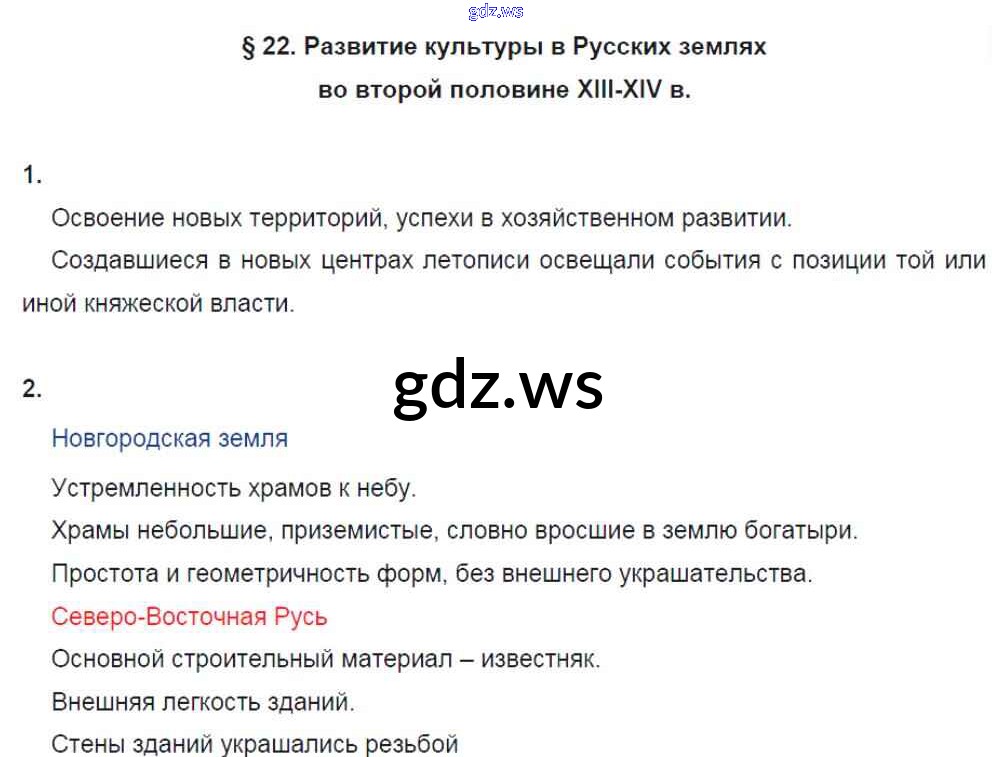 Готовый и полный ответ к §22. Развитие культуры в русских землях во второй половине XIII-XIV в. - Истории 6 класс Артасов Рабочая тетрадь ФГОС