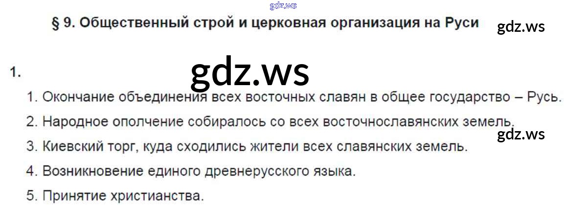 Готовый и полный ответ к §9. Общественный строй и церковная организация на Руси - Истории 6 класс Артасов Рабочая тетрадь ФГОС