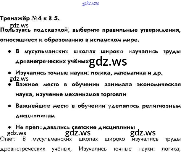 Готовый ответ Тренажёр §5. Мир ислама - Истории 6 класс Бойцов Учебник Инновационная школа ФГОС
