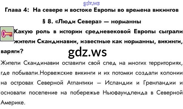 Готовый ответ Ключевые вопросы §8. «Люди Севера» — норманны - Истории 6 класс Бойцов Учебник Инновационная школа ФГОС