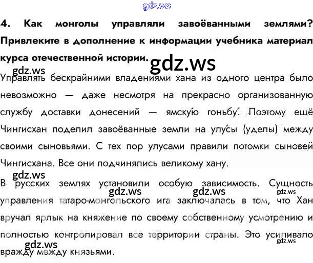 Готовый и полный ответ к Вопросы и задания после параграфа §23. Во владениях великого хана - Истории 6 класс Бойцов Учебник Инновационная школа ФГОС