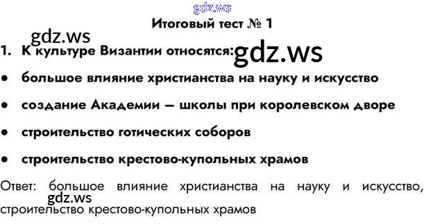 Готовый и полный ответ к Тест №1 Итоговый тест - Истории 6 класс Бойцов Учебник Инновационная школа ФГОС
