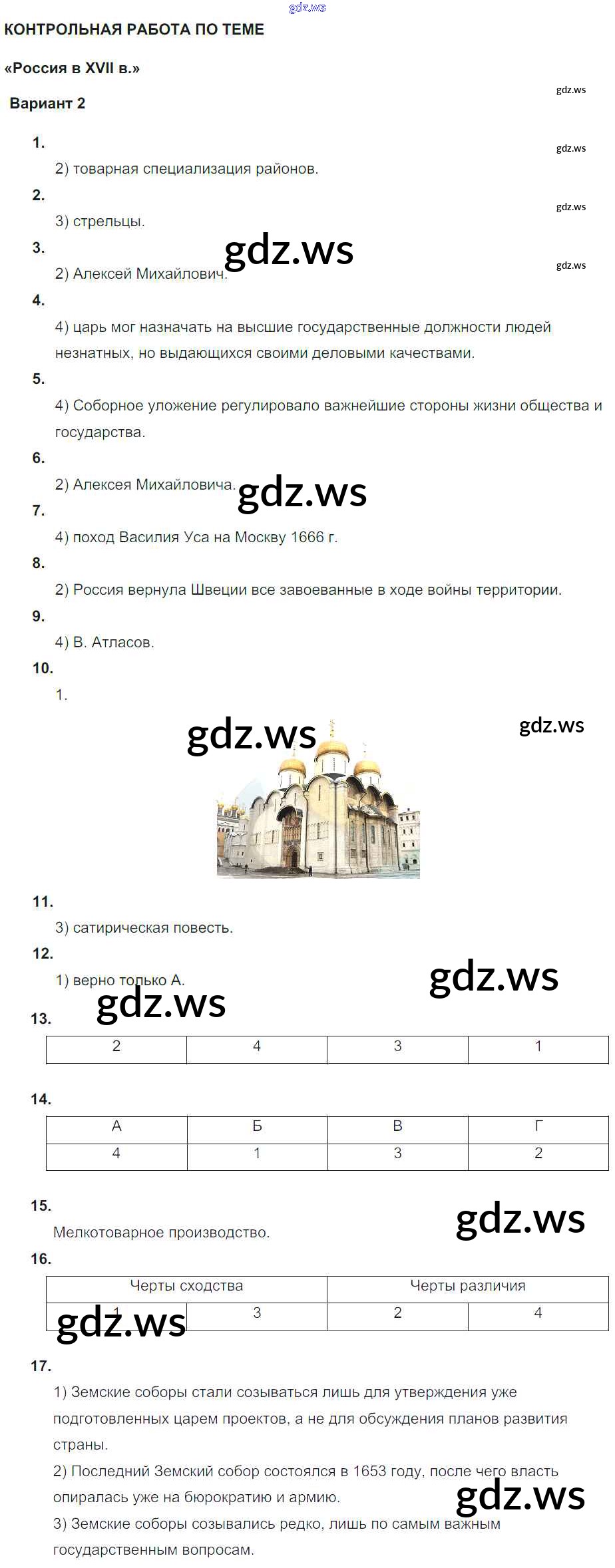 Готовый ответ КР. Россия в XVII веке Россия в XVII веке - Истории 7 класс Акиньшина Рабочая тетрадь ФГОС