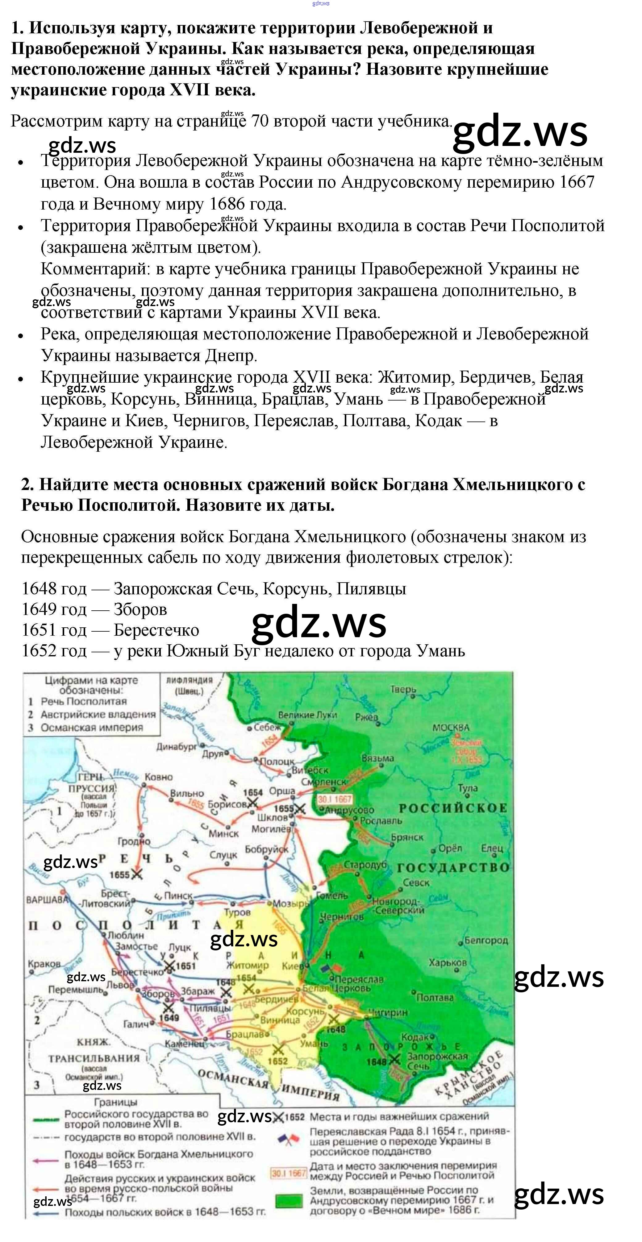 Готовый и полный ответ к Работаем с картой §23. «Под рукой» российского государя: вхождение Украины в состав России - Истории 7 класс Арсентьев Учебник ФГОС