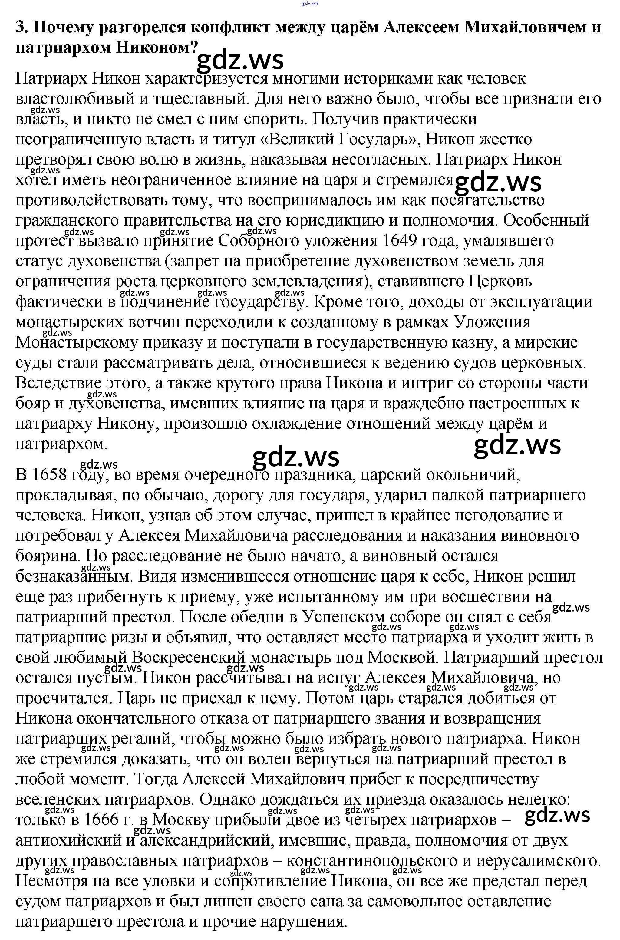 Готовый и полный ответ к Вопросы и задания §24. Русская православная церковь в XVII в. Реформа патриарха Никона и Раскол - Истории 7 класс Арсентьев Учебник ФГОС