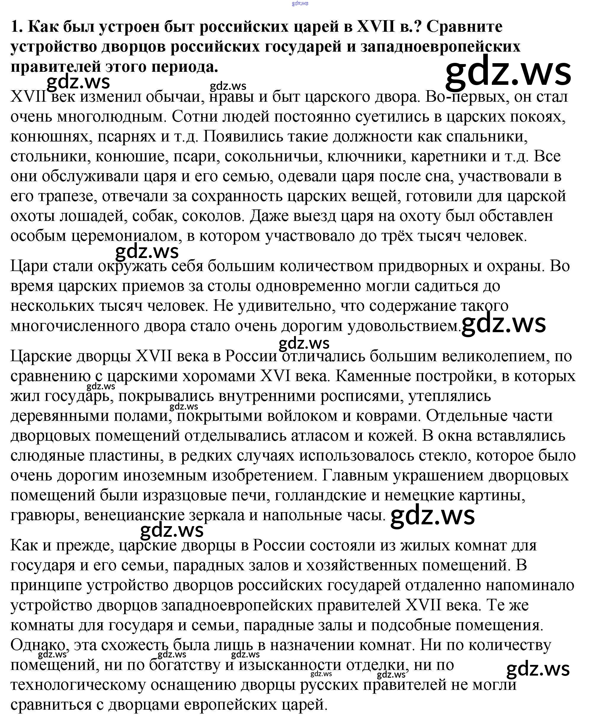 Готовый и полный ответ к Вопросы и задания Сословный быт и картина мира русского человека в XVII в. - Истории 7 класс Арсентьев Учебник ФГОС