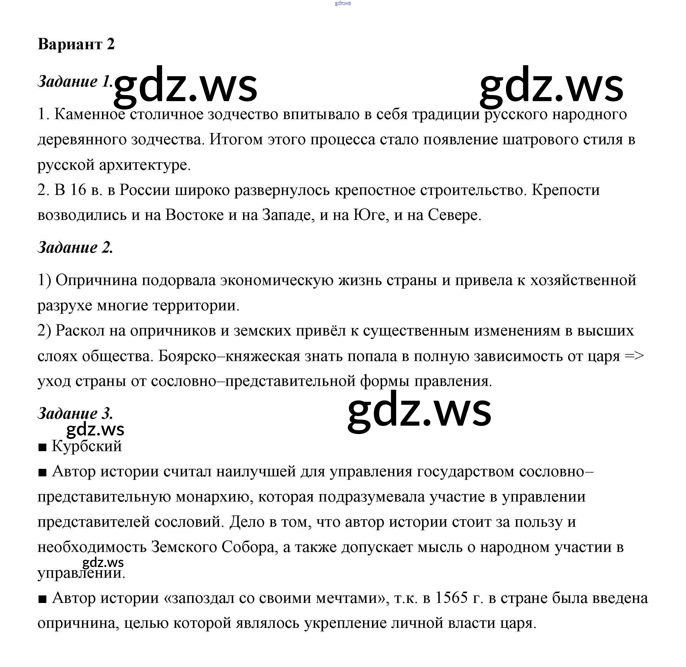 Готовый и полный ответ к Страницы - Истории 7 класс Артасов Контрольные работы УМК ФГОС