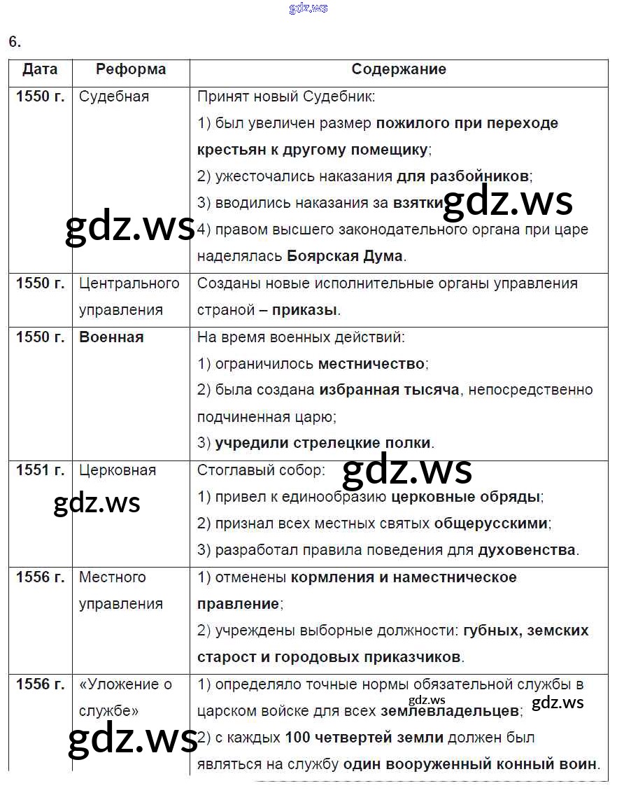 Готовый и полный ответ к § 6. Начало правление Ивана IV. Реформы Избранной рады - Истории 7 класс Данилов Рабочая тетрадь ФГОС