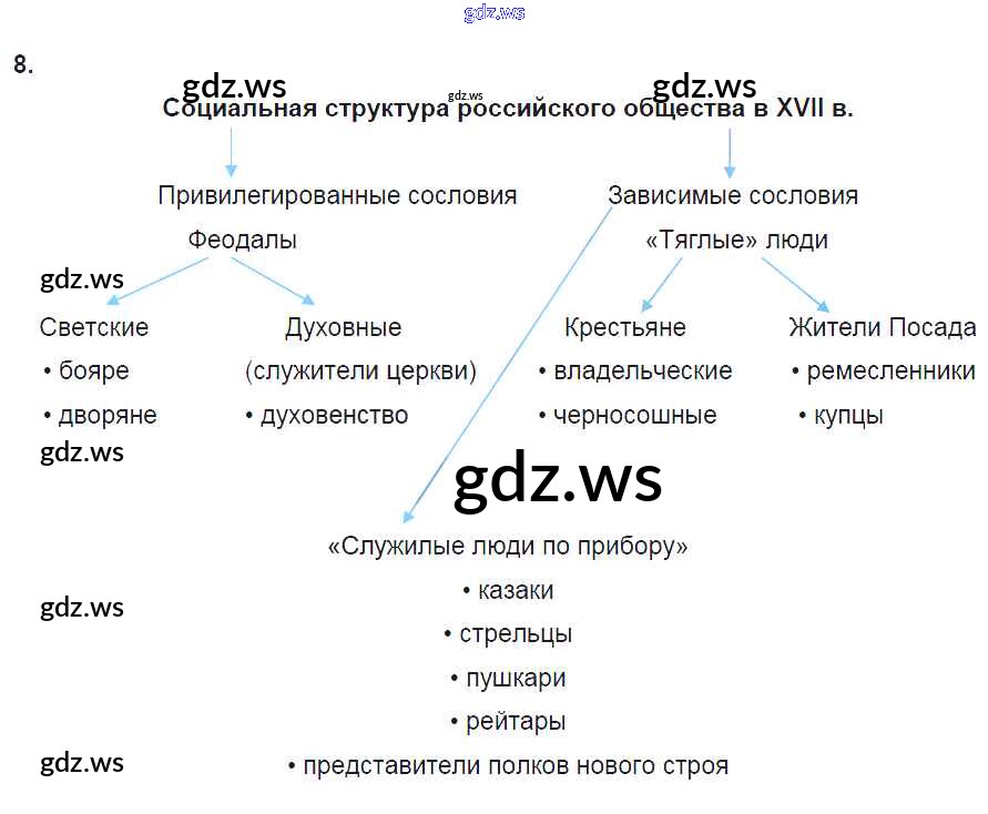 Готовый ответ § 19. Изменения в социальной структуре российского общества - Истории 7 класс Данилов Рабочая тетрадь ФГОС