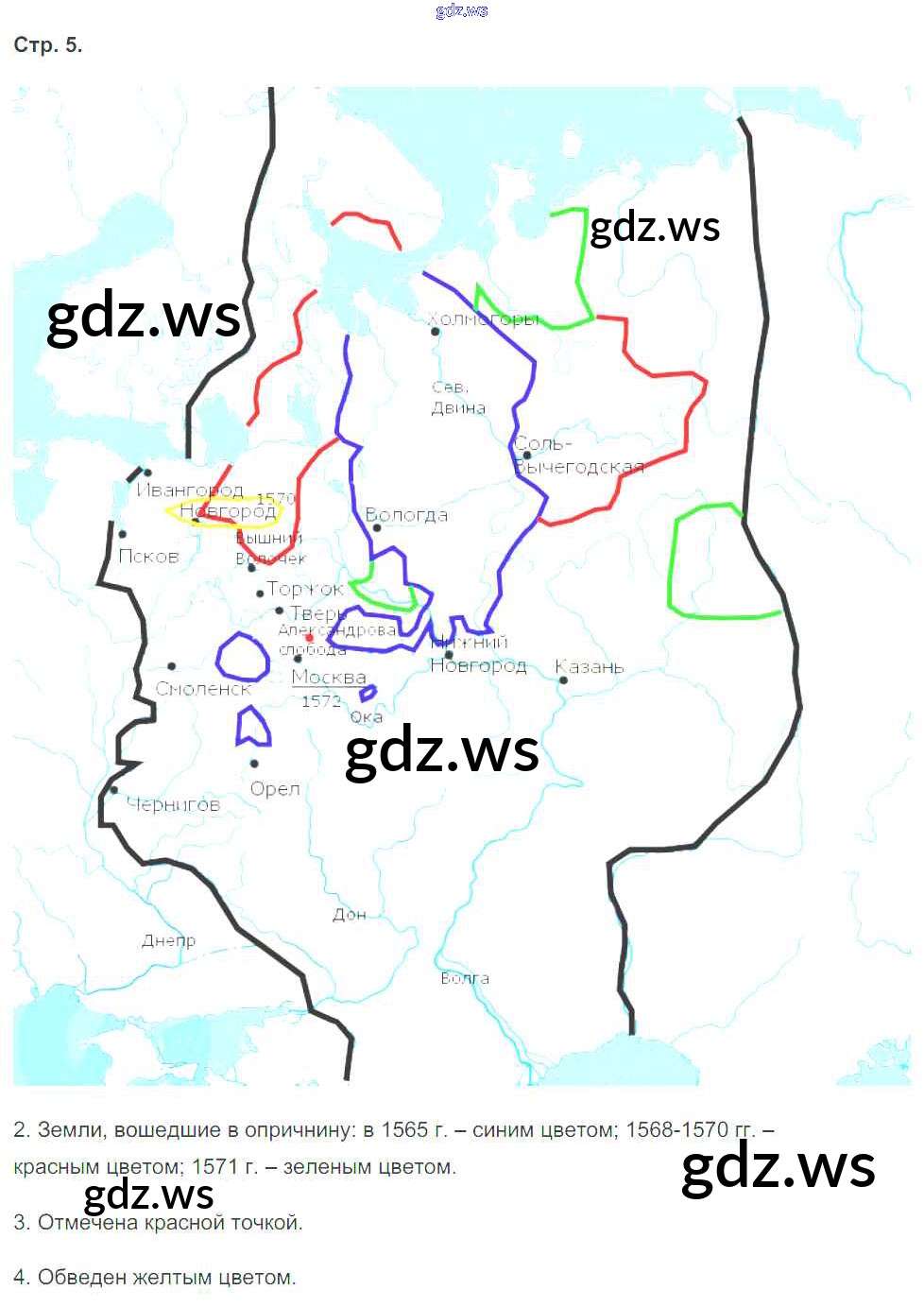 Готовый и полный ответ к Страницы - Истории 7 класс Торкунов Контурные карты УМК ФГОС