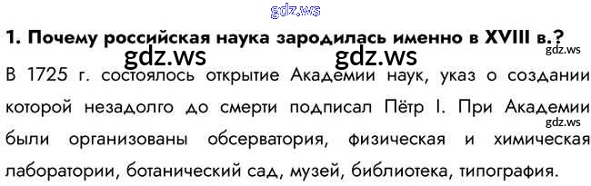 Готовый и полный ответ к Вопросы и задания Российская наука и техника в XVIII в. - Истории 8 класс Арсентьев Учебник ФГОС
