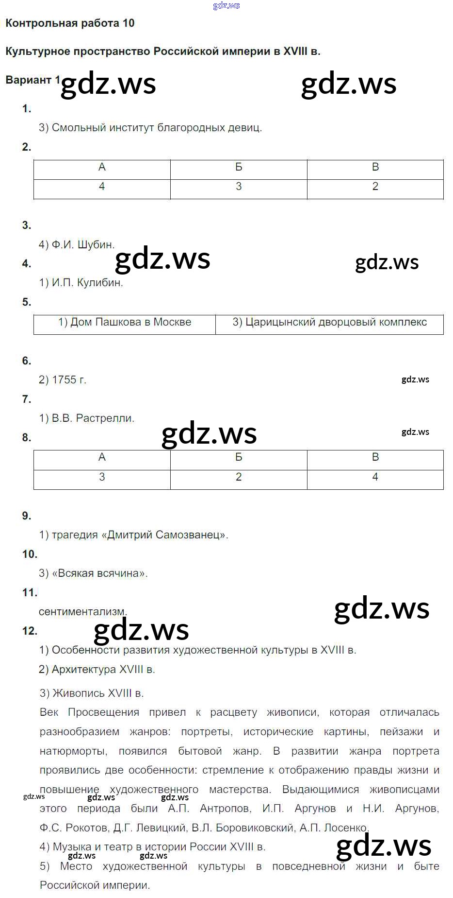 Готовый и полный ответ к КР-10. Варианты - Истории 8 класс Соловьев Контрольные работы УМК ФГОС