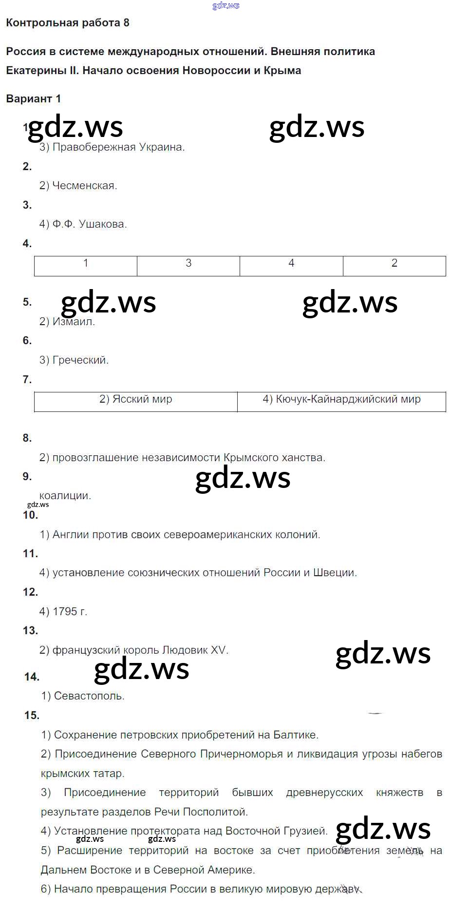 Готовый и полный ответ к КР-8. Варианты - Истории 8 класс Соловьев Контрольные работы УМК ФГОС