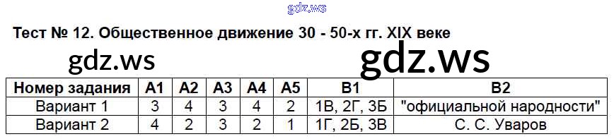 Готовый ответ Тесты - Истории 8 класс Волкова Контрольно-измерительные материалы (КИМ) ФГОС