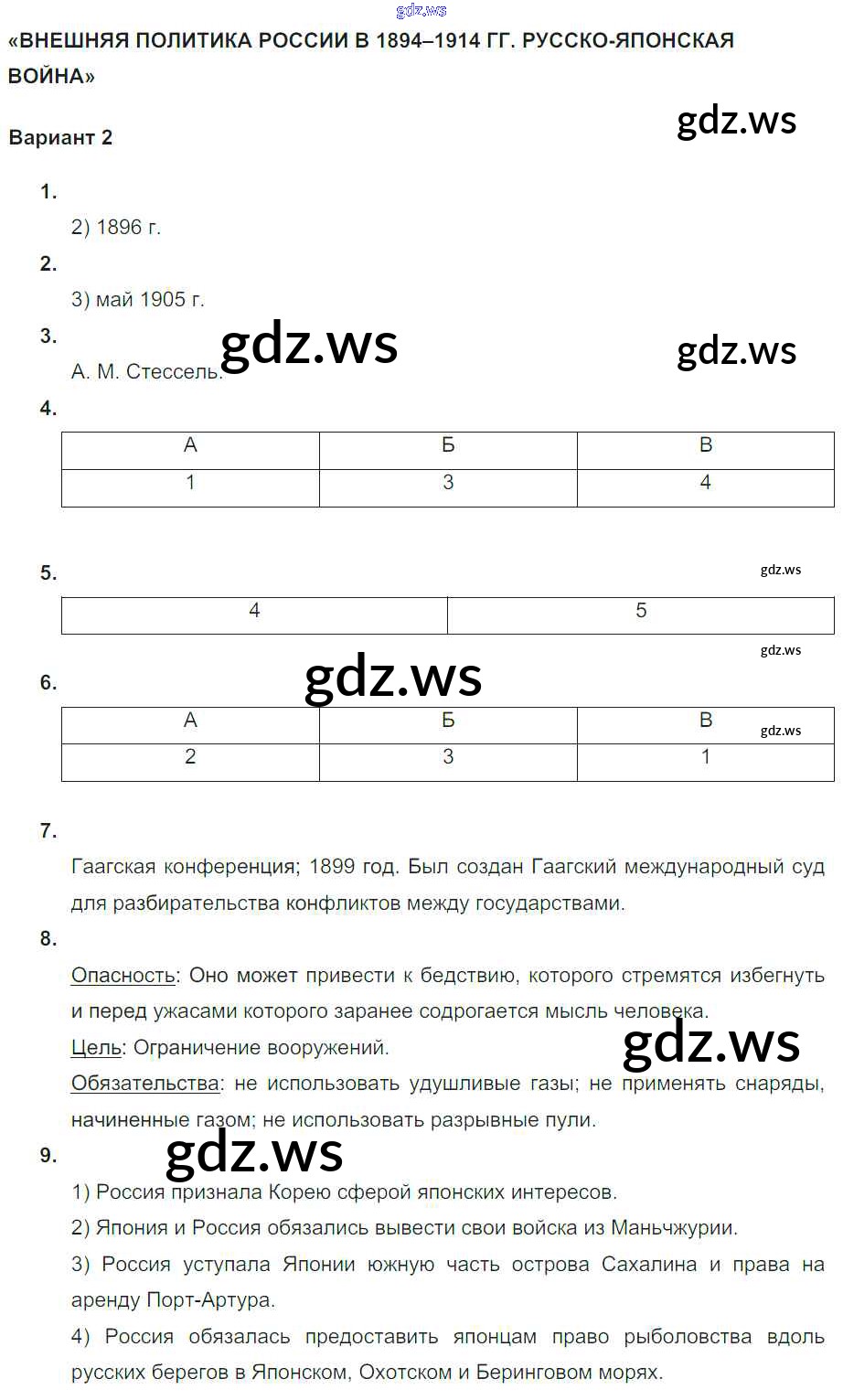 Готовый и полный ответ к СР-2. Варианты Россия в 1894–1914 гг. - Истории 9 класс Артасов Тематический контроль ФГОС