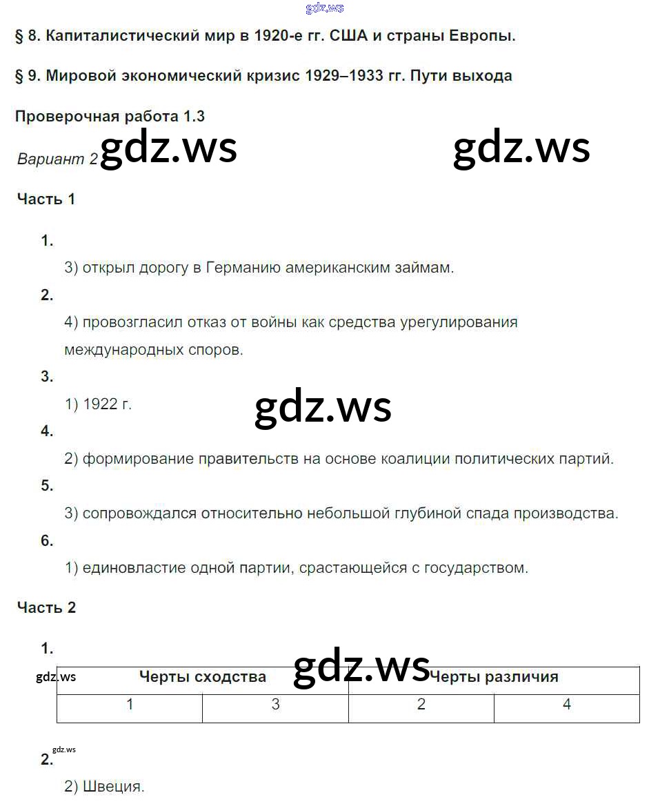 Готовый и полный ответ к Параграфы 8-9 Проверочные работы - Истории 9 класс Баранов Проверочные и контрольные работы ФГОС