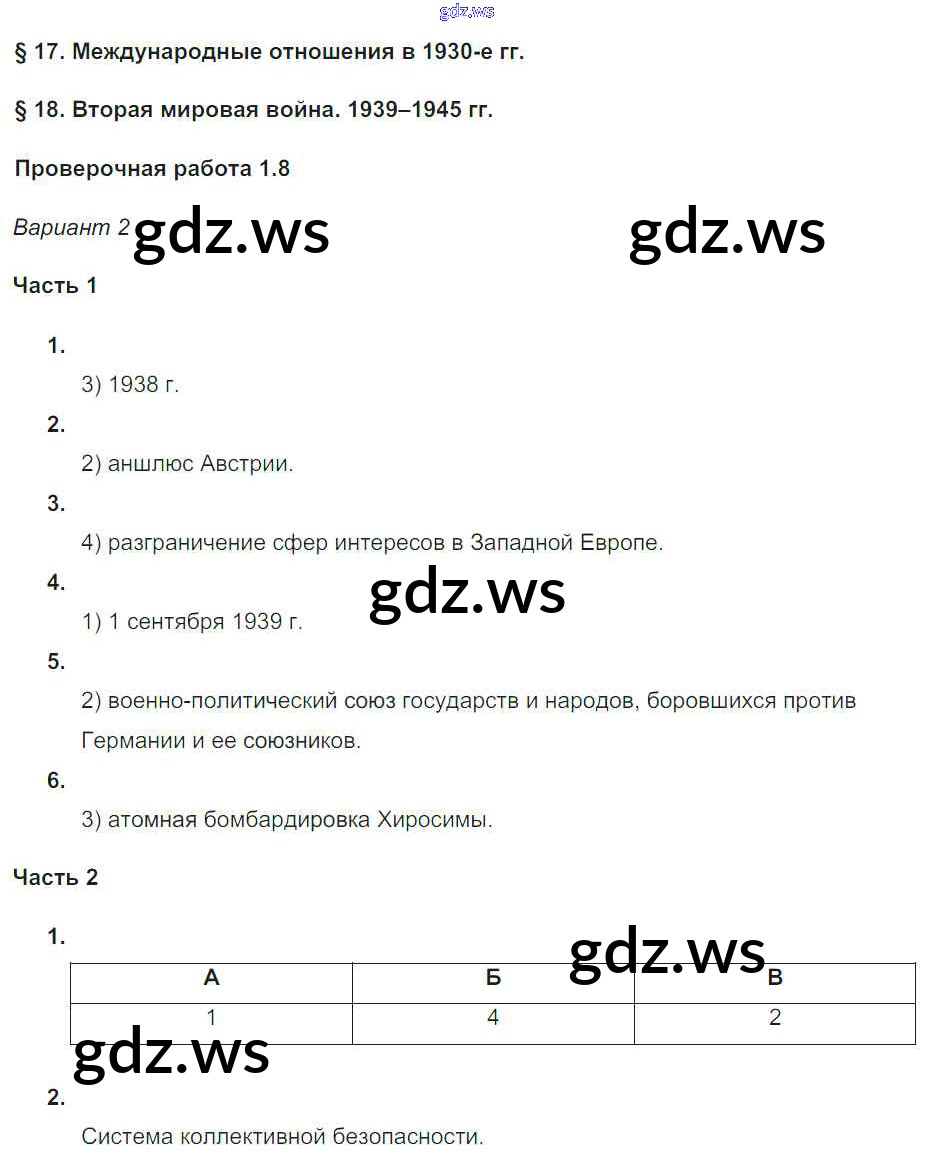 Готовый и полный ответ к Параграфы 17-18 Проверочные работы - Истории 9 класс Баранов Проверочные и контрольные работы ФГОС