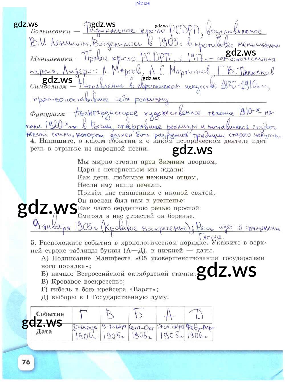 Готовый ответ Часть 2. Страницы - Истории 9 класс Данилов Рабочая тетрадь УМК ФГОС