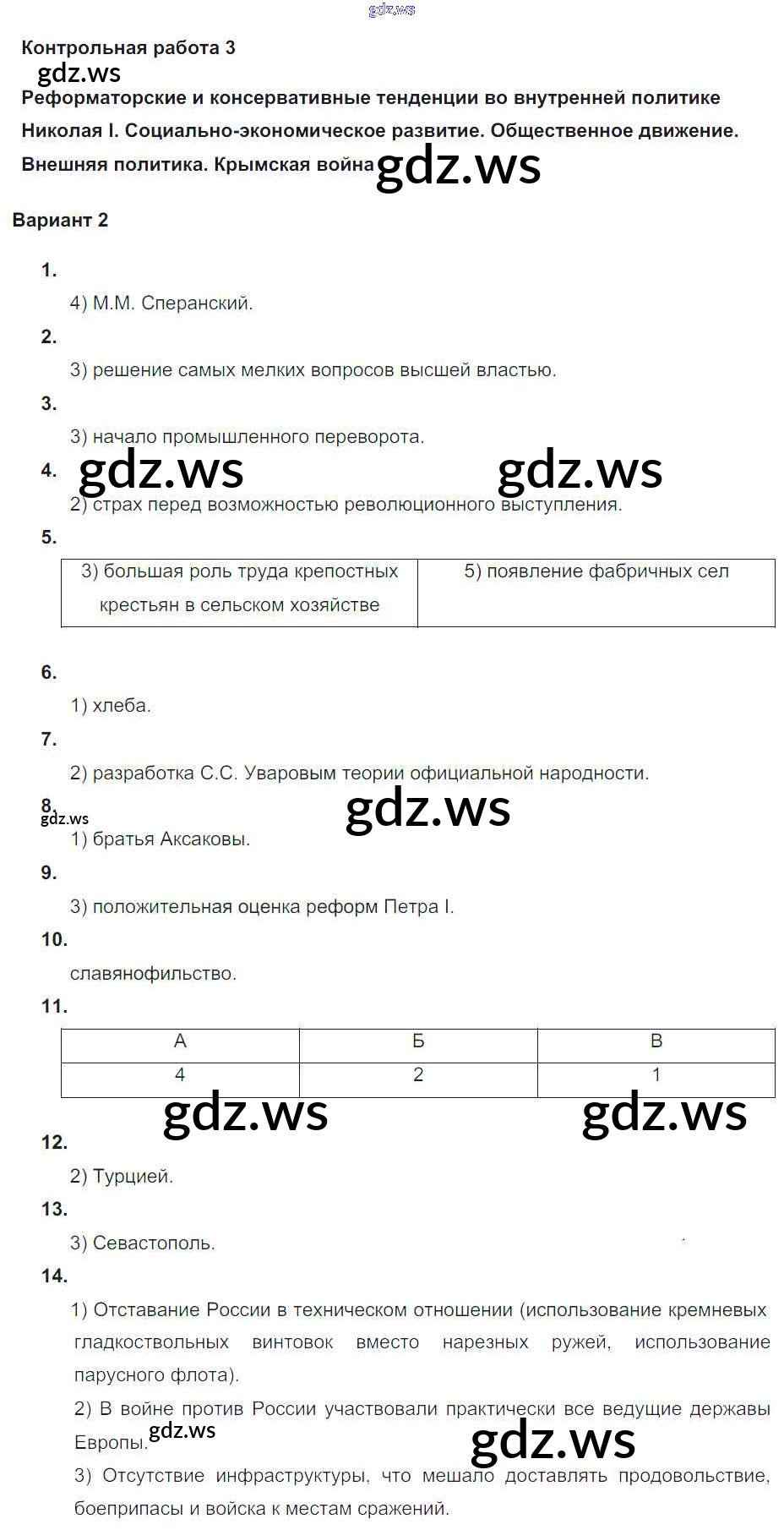 Готовый и полный ответ к КР-3. Варианты - Истории 9 класс Соловьев Контрольные работы УМК ФГОС