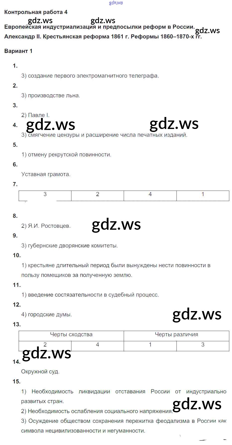 Готовый и полный ответ к КР-4. Варианты - Истории 9 класс Соловьев Контрольные работы УМК ФГОС