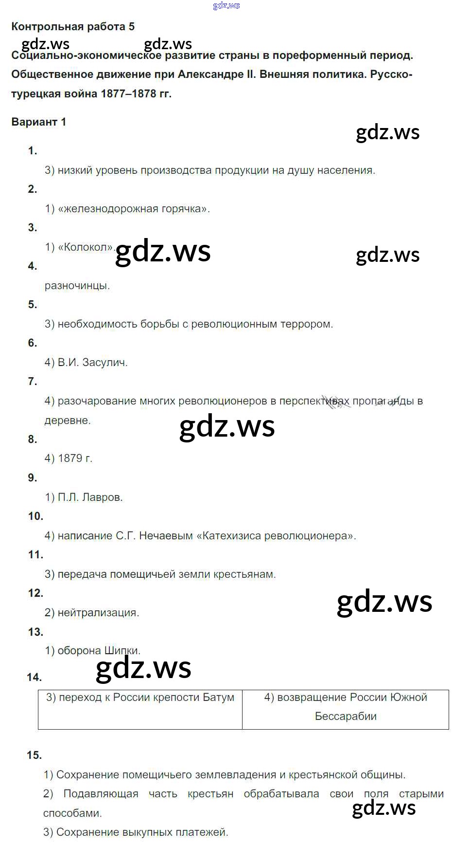 Готовый и полный ответ к КР-5. Варианты - Истории 9 класс Соловьев Контрольные работы УМК ФГОС