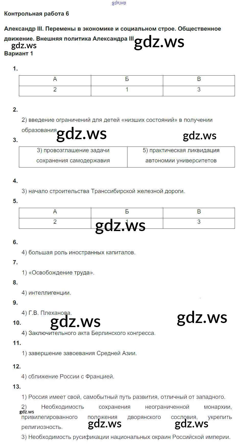 Готовый и полный ответ к КР-6. Варианты - Истории 9 класс Соловьев Контрольные работы УМК ФГОС