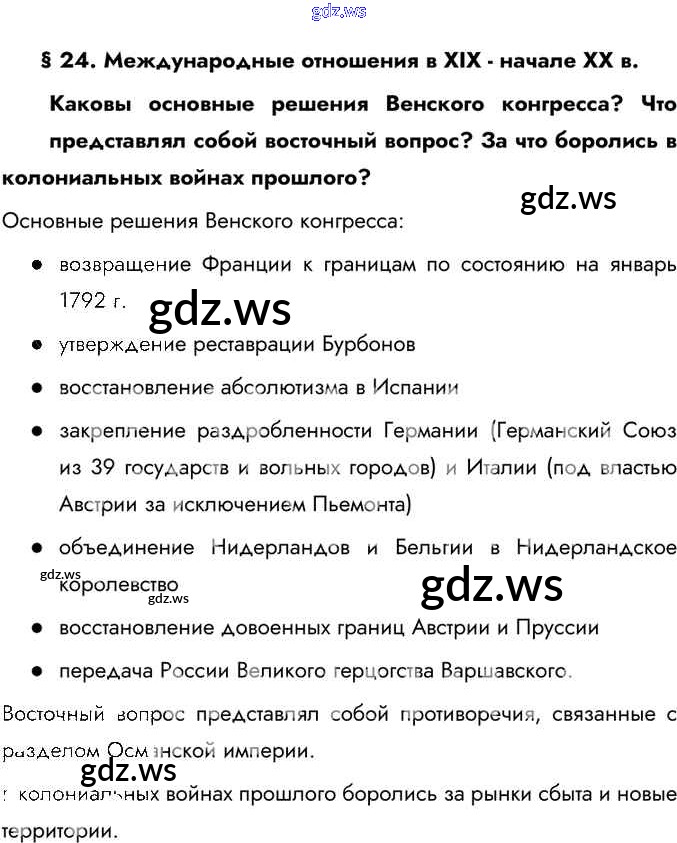 Готовый ответ Вспомните §24. Международные отношения в XIX — начале XX в. - Истории 9 класс Юдовская Учебник ФГОС