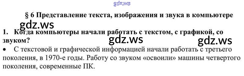 Готовый и полный ответ к §6. Представление текста, изображения и звука - Информатике 10 класс Семакин Учебник Базовый уровень ФГОС