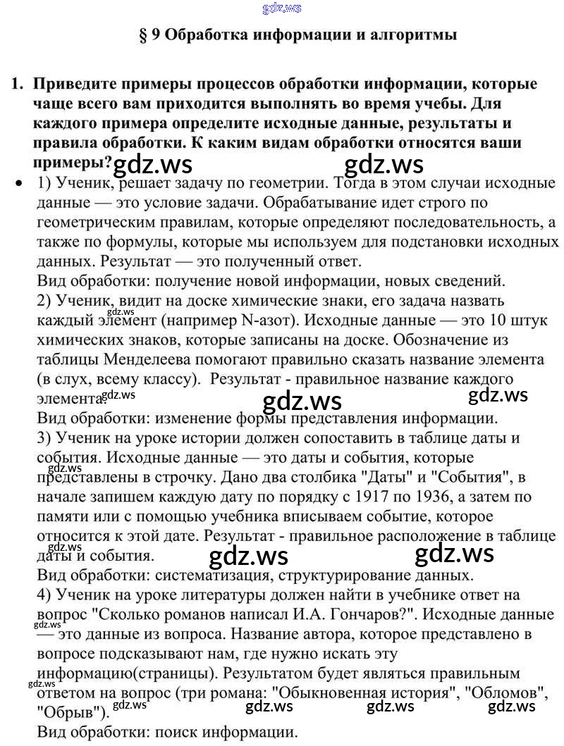 Готовый ответ §9. Обработка информации и алгоритмы - Информатике 10 класс Семакин Учебник Базовый уровень ФГОС