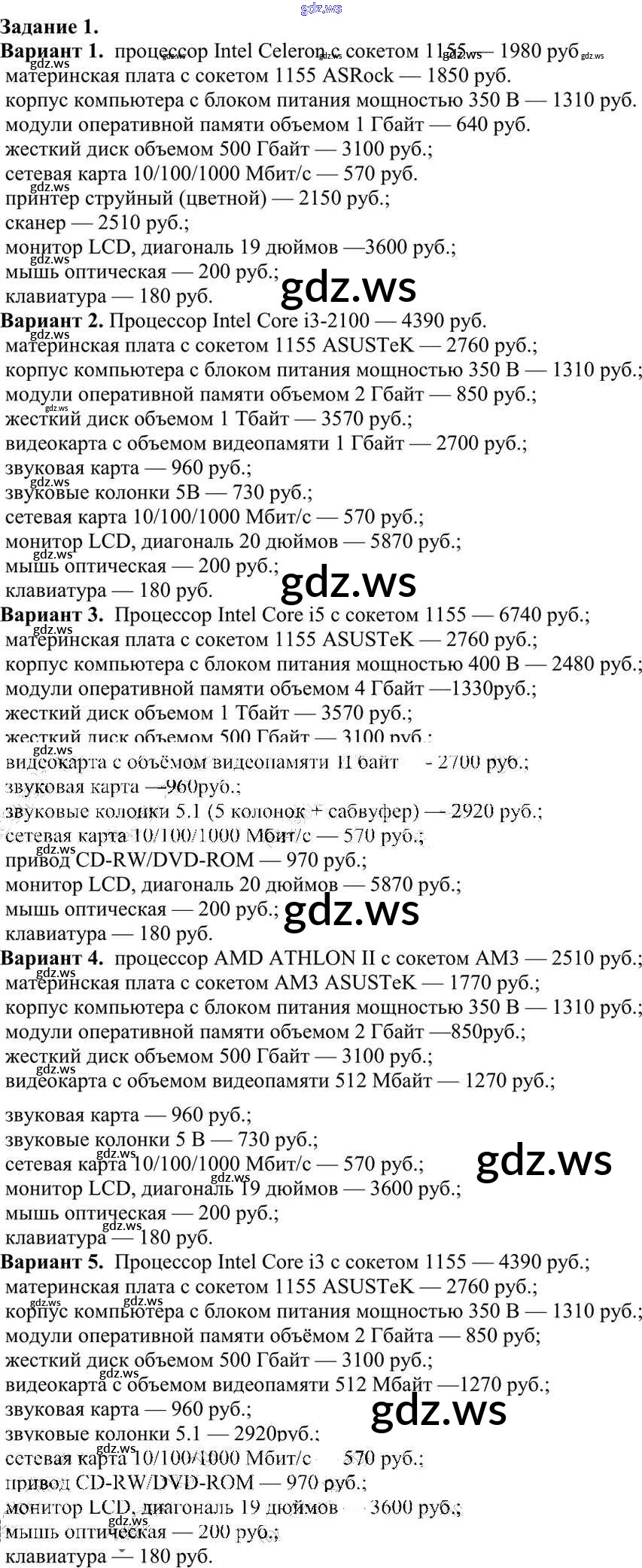 Готовый и полный ответ к Работа 2.3. Проектное задание. Выбор конфигурации компьютера Практические работы к главе 2 «Информационные процессы» - Информатике 10 класс Семакин Учебник Базовый уровень ФГОС
