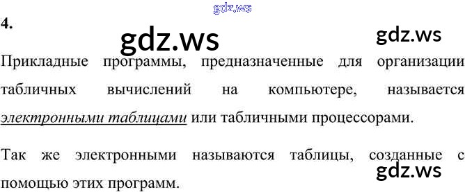 Готовый и полный ответ к §3.1. Электронные таблицы Глава 3 - Информатике 9 класс Босова Учебник ФГОС