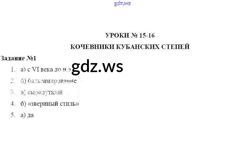 Готовый ответ Урок № 15-16. Кочевники кубанских степей - Кубановедению 5 класс Трехбратов Рабочая тетрадь