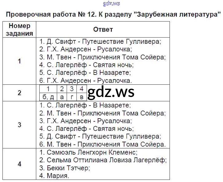 Готовый и полный ответ к Проверочные работы - Литературе 4 класс Кутявина Контрольно-измерительные материалы (КИМ) ФГОС