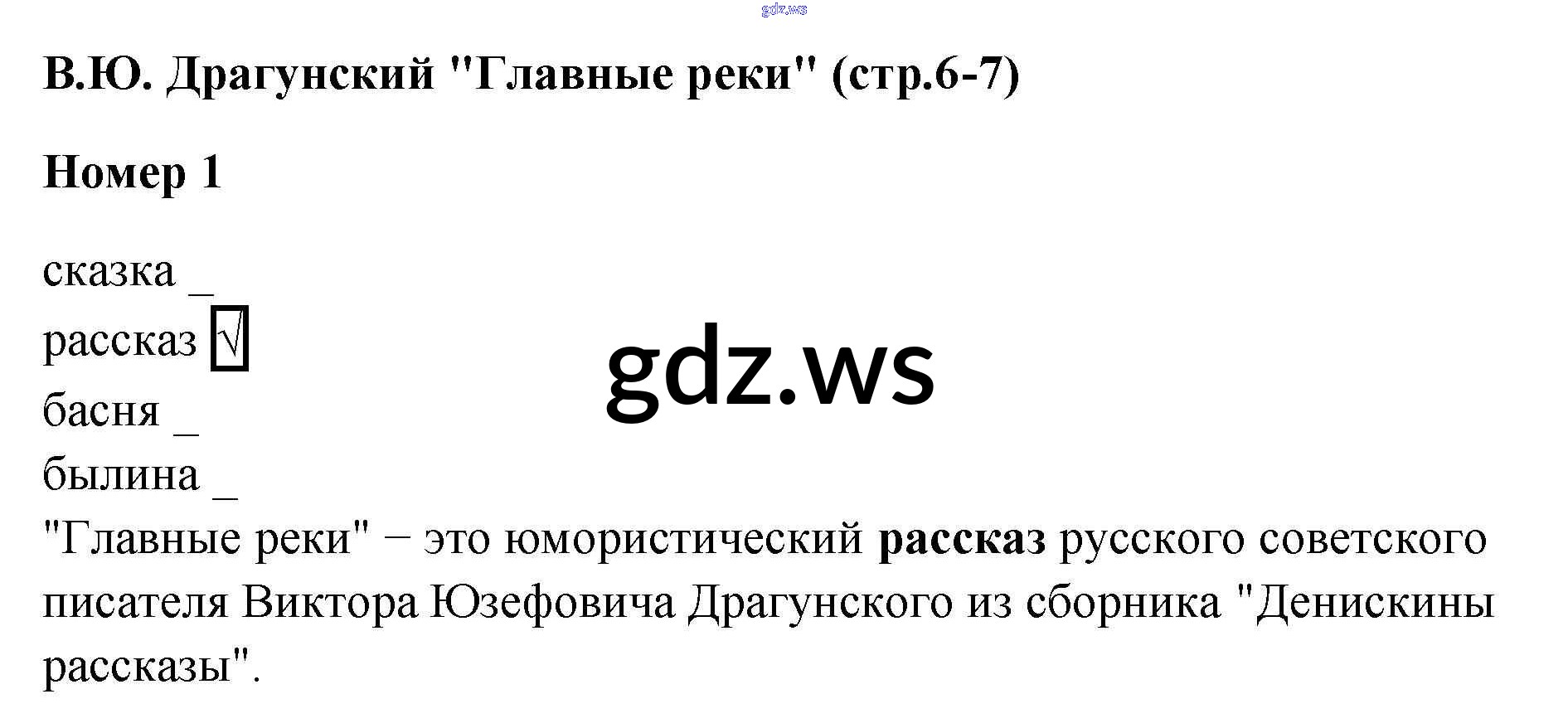 Готовый ответ В.Ю. Драгунский "Главные реки" Делу время, потехе час - Литературе 4 класс Тихомирова Рабочая тетрадь УМК ФГОС