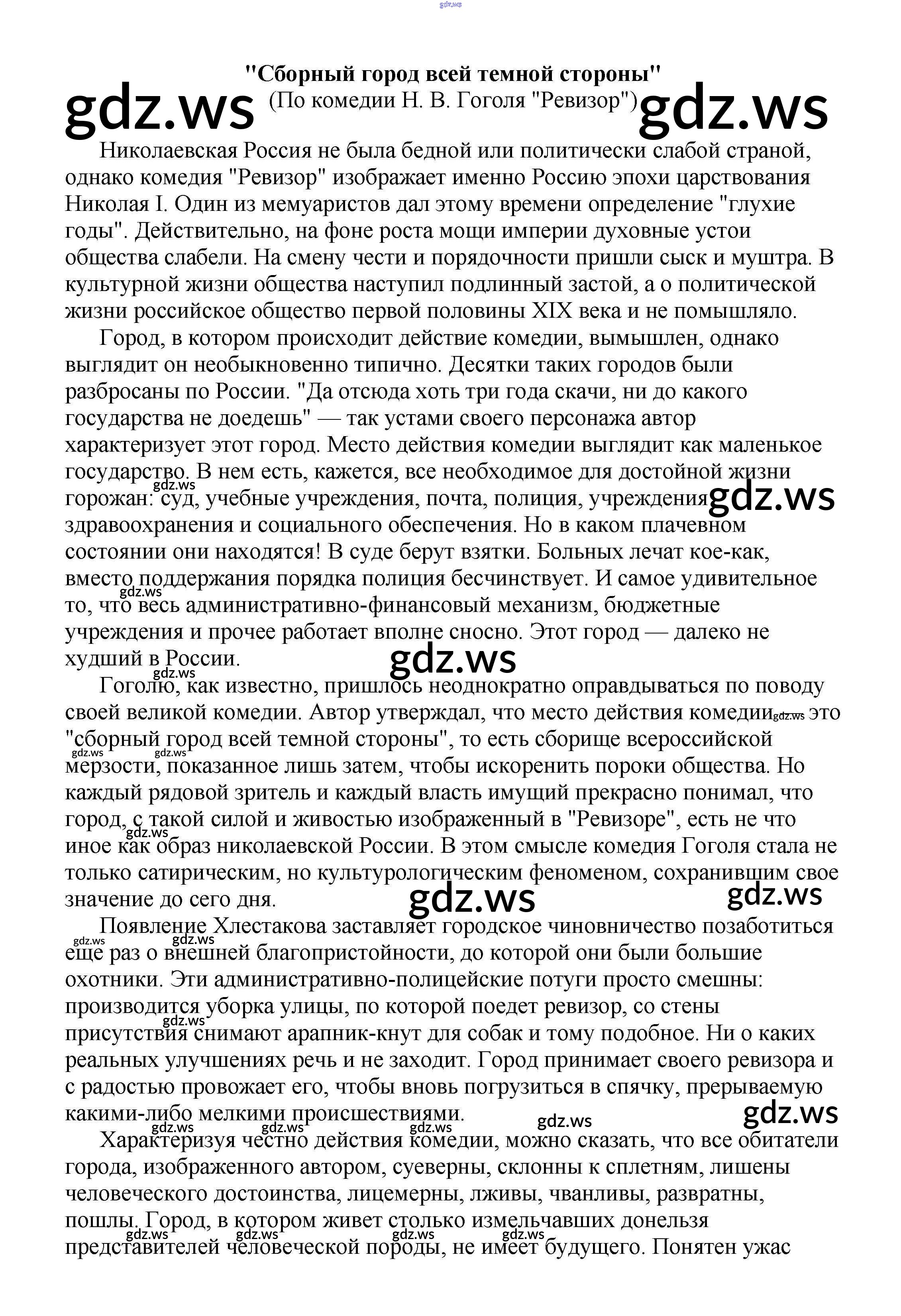 8 класс / сочинения по русской литературе / "Сборный город всей темной стороны" (По комедии Н. В. Гоголя "Ревизор")