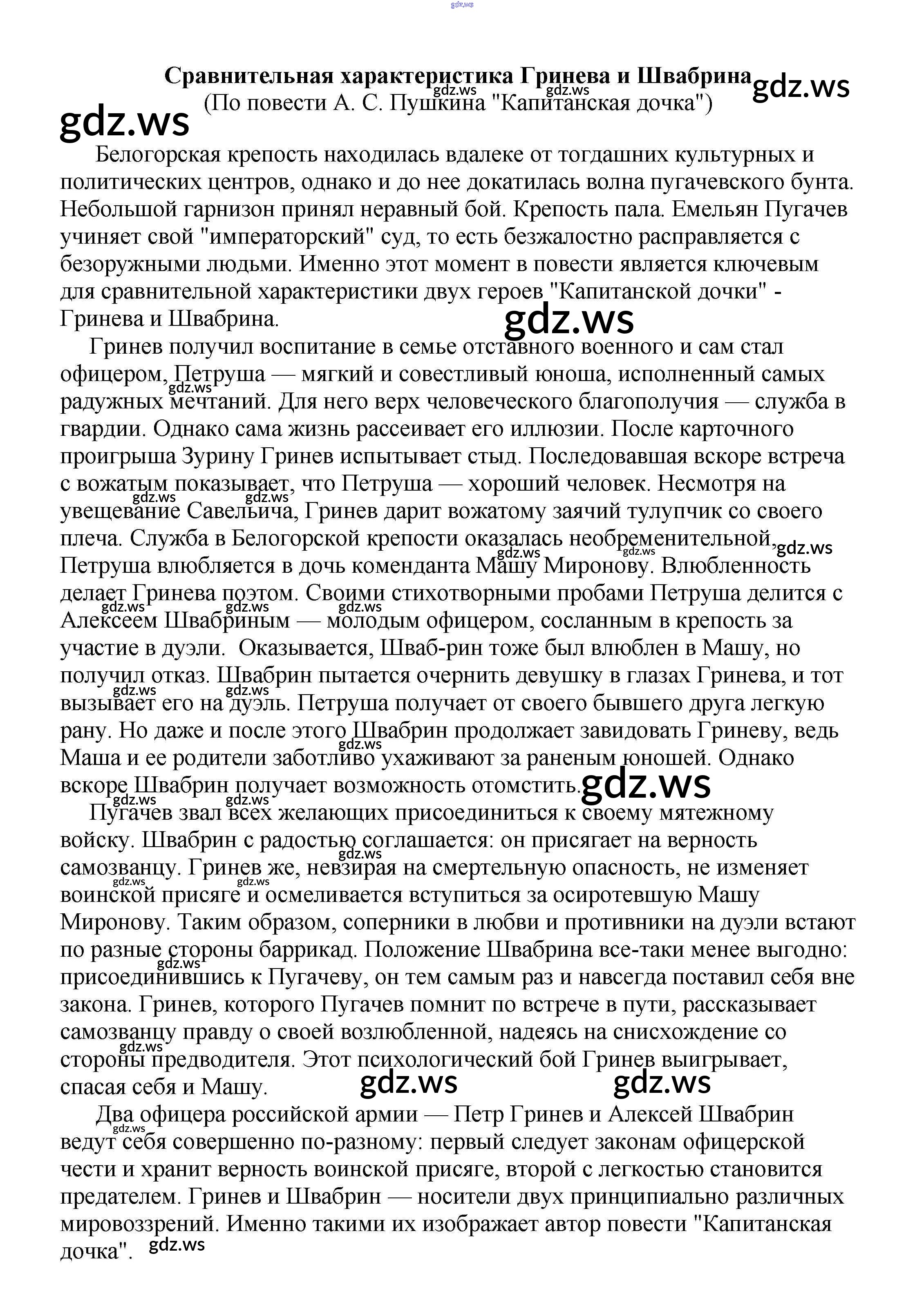8 класс / сочинения по русской литературе / Сравнительная характеристика Гринева и Швабрина (По повести А. С. Пушкина "Капитанская дочка")