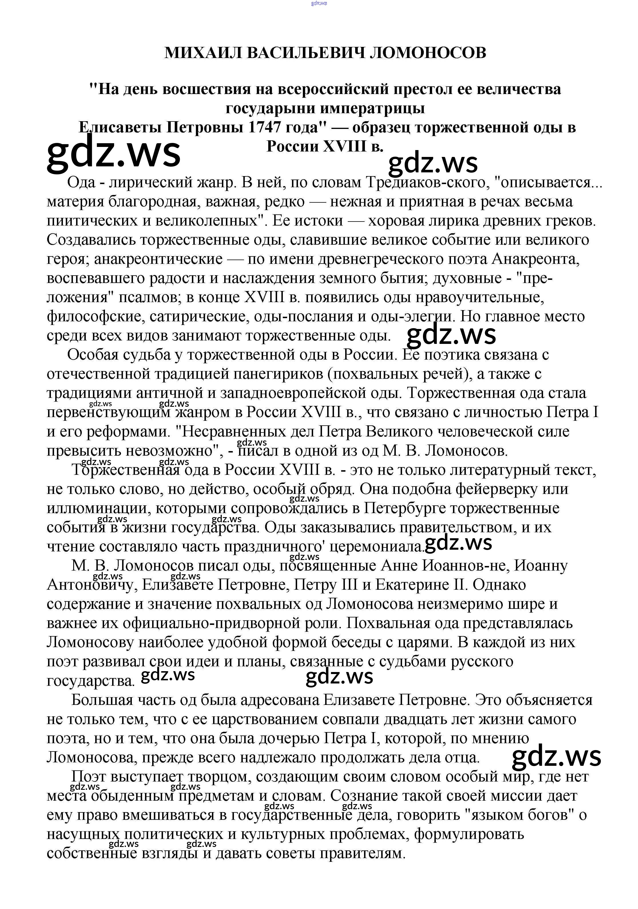 9 класс / сочинения по русской литературе / "На день восшествия на всероссийский престол ее величества государыни императрицы Елисаветы Петровны 1747 года" — образец торжественной оды в России XVIII в.