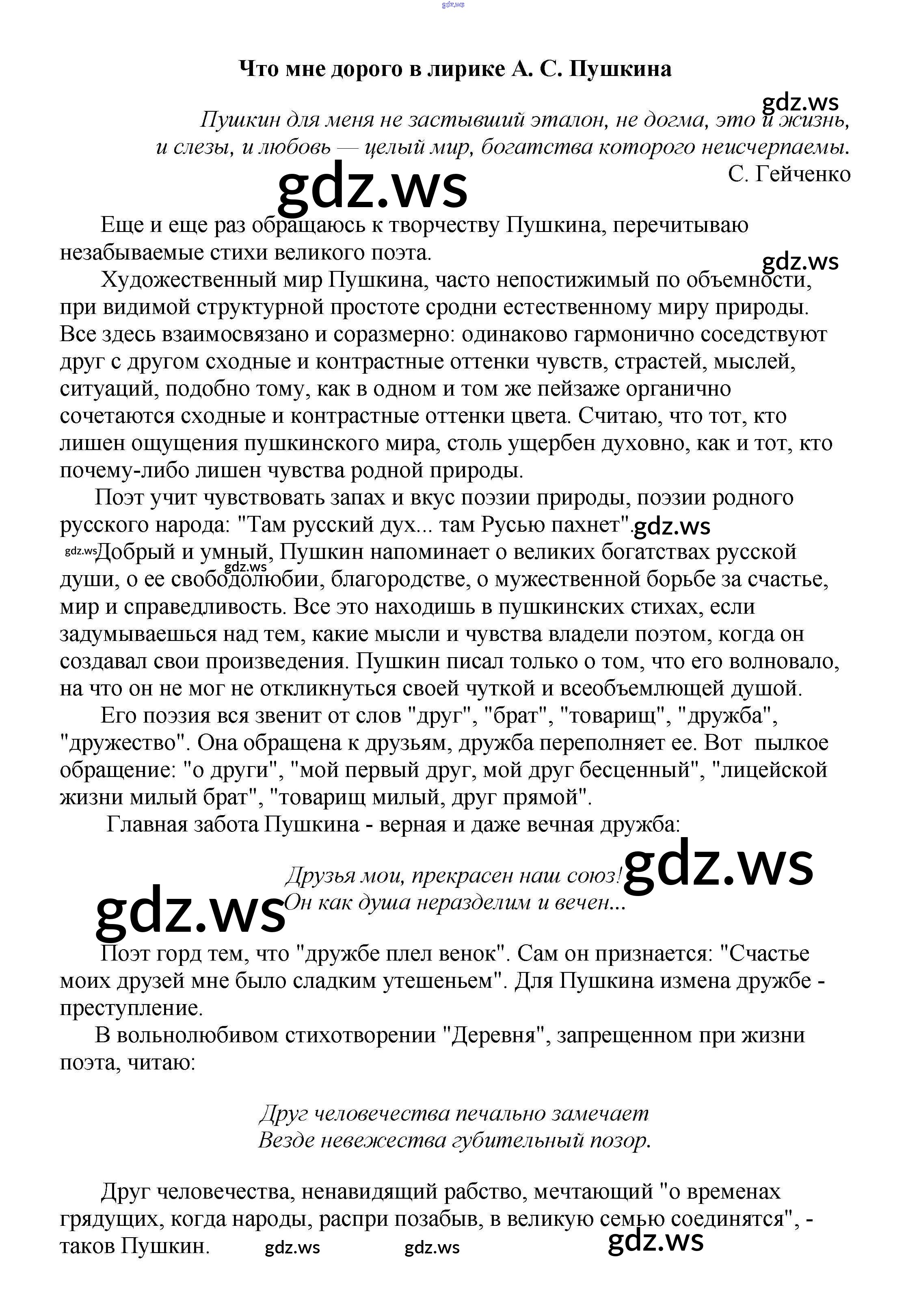 9 класс / сочинения по русской литературе / Что мне дорого в лирике А. С. Пушкина