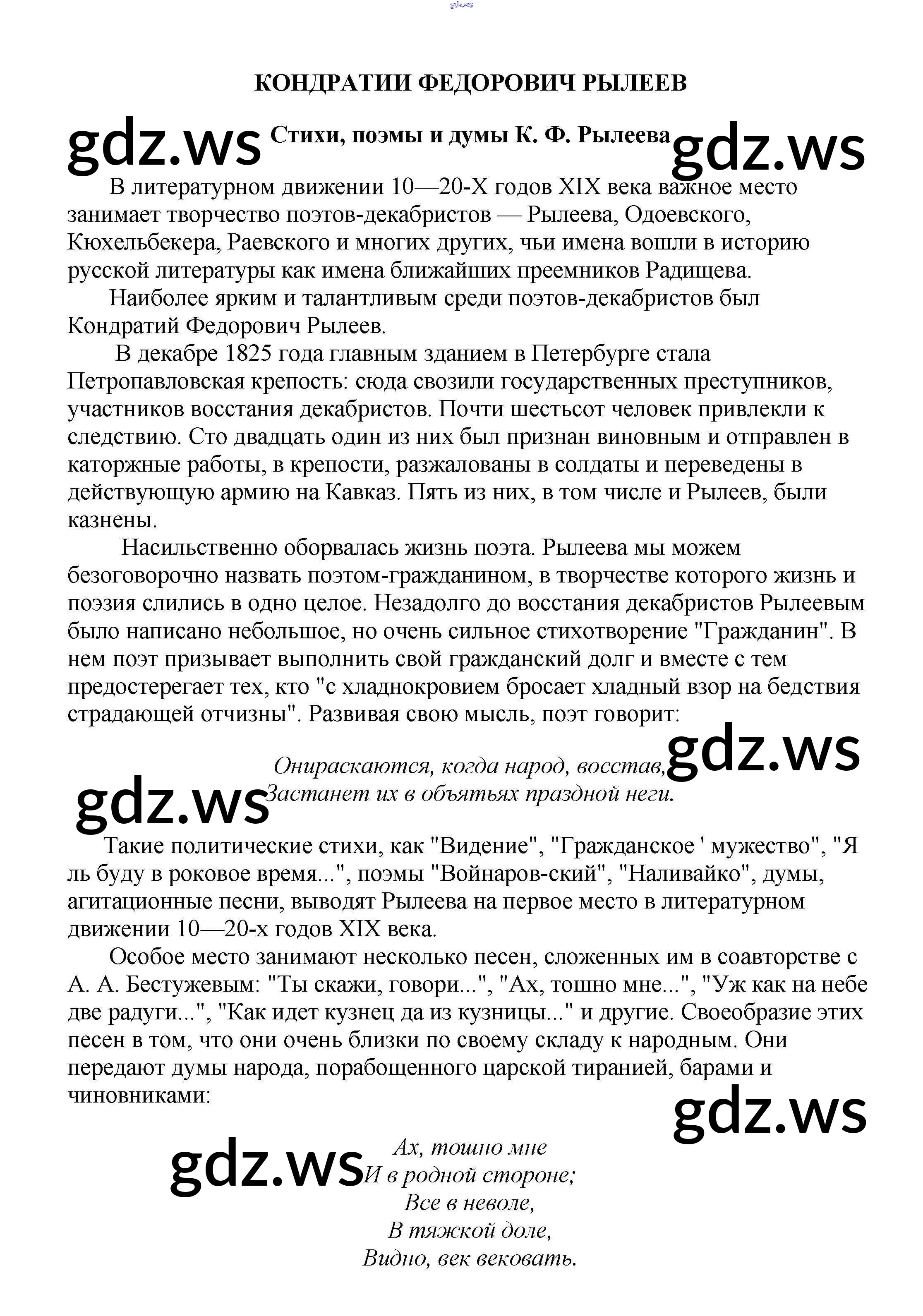 9 класс / сочинения по русской литературе / Стихи, поэмы и думы К. Ф. Рылеева